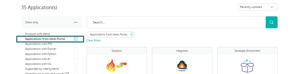 Usuários do Open Exchange agora podem filtrar os aplicativos que desejam baixar usando o novo filtro "Aplicativos do Portal de Ideias". Você pode mencionar a ideia implementada ao enviar seu novo aplicativo para OEX. A captura de tela abaixo mostra a aparência desse novo filtro.