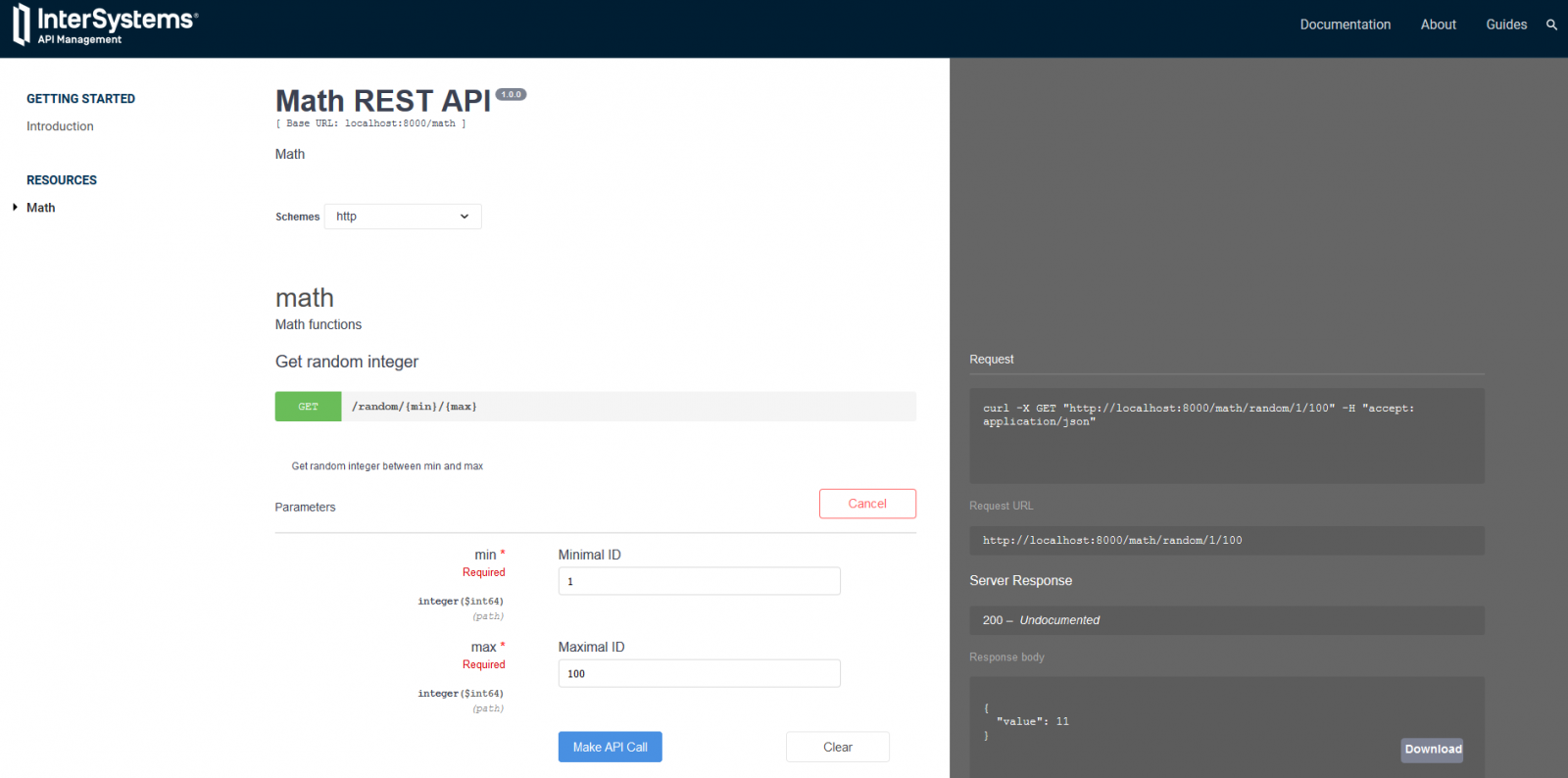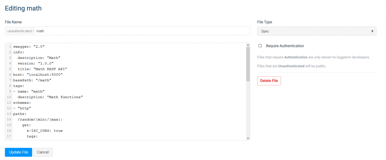 Vamos carregar nossa primeira especificação de API nele (em YAML). É uma API simples com uma solicitação GET - retornando um número aleatório em um intervalo especificado.