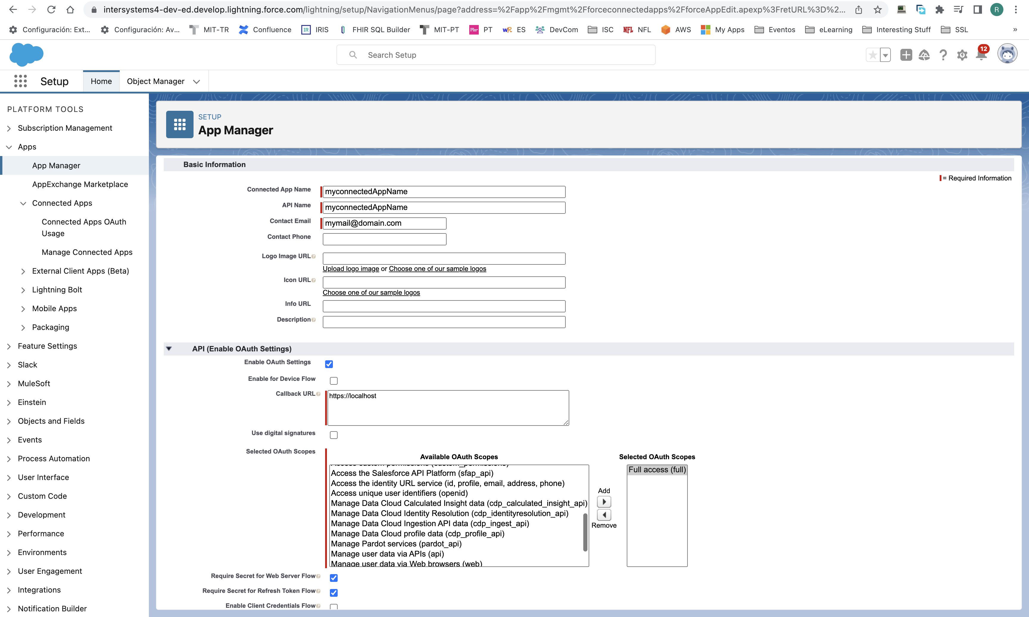 · forneça o nome da configuração SSL registrada para estabelecer o SSL sobre o HTTP conforme exigido pelo OAuth 2.0
