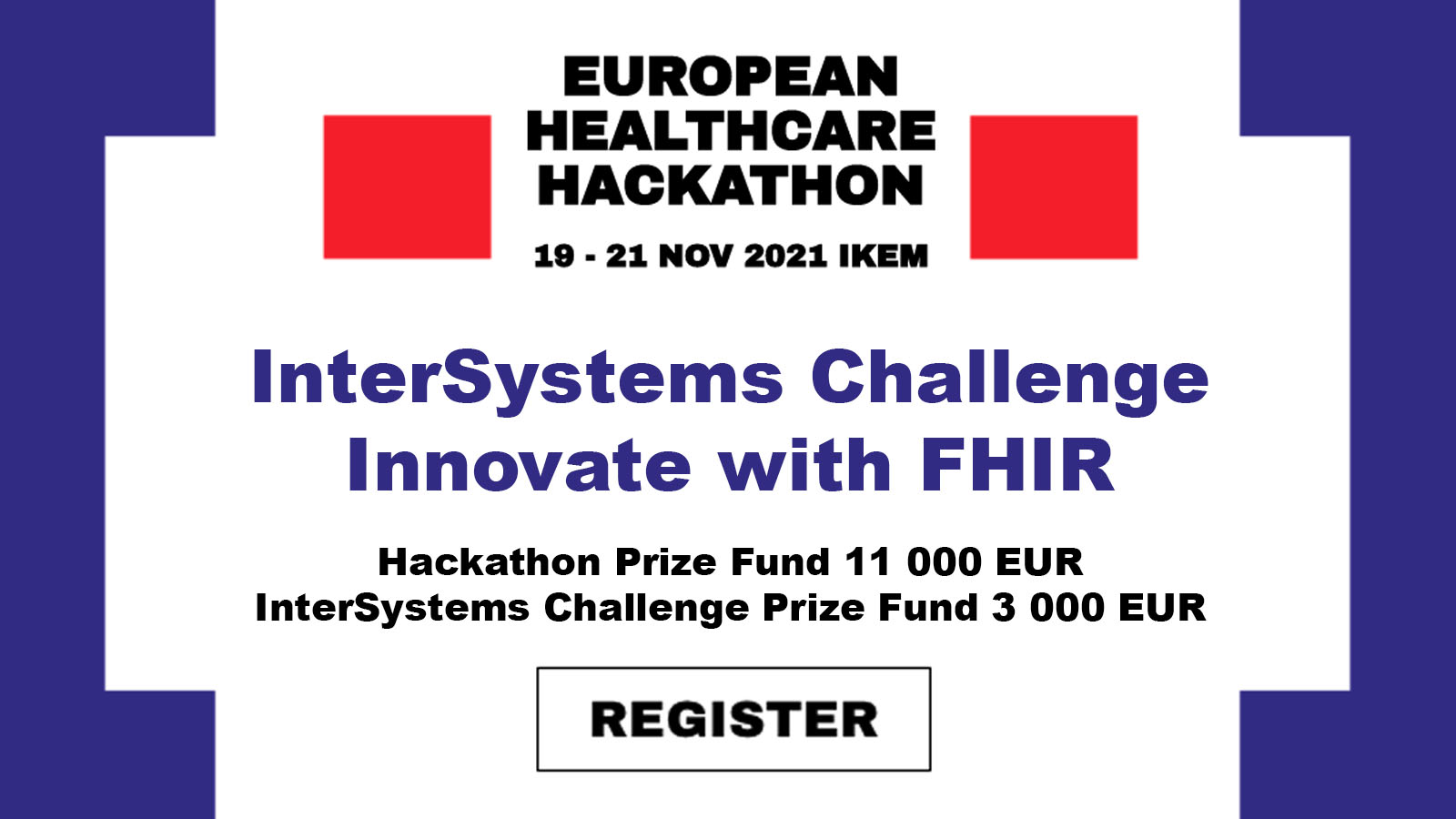 Nós teremos um desafio InterSystems lá: "Inove com FHIR". Premiações na trilha InterSystems: 1° lugar: 1.500 EUR, 2° lugar: 1.000 EUR, 3° lugar: 500 EUR. Leiam os detalhes sobre nosso desafio abaixo da imagem :)